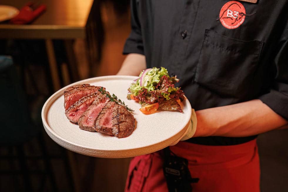 B3 Steakhouse nổi tiếng với những phần steak chất lượng cao được nấu bằng than Binchotan Nhật Bản, mang lại hương vị khói và kết cấu hoàn hảo. Thực đơn của nhà hàng bao gồm các phần steak Tenderloin, Ribeye và Striploin, mỗi loại đều có hương vị và kết cấu riêng biệt. Ngoài ra, B3 Steakhouse cũng cung cấp nhiều loại thịt bò từ các nguồn chăn nuôi không sử dụng hóa chất, đảm bảo cả về chất lượng và tiêu chuẩn đạo đức.